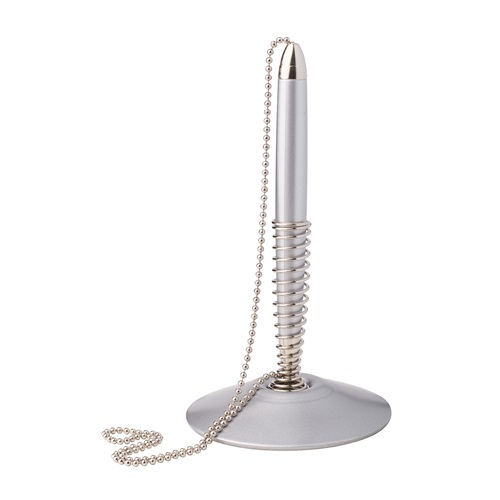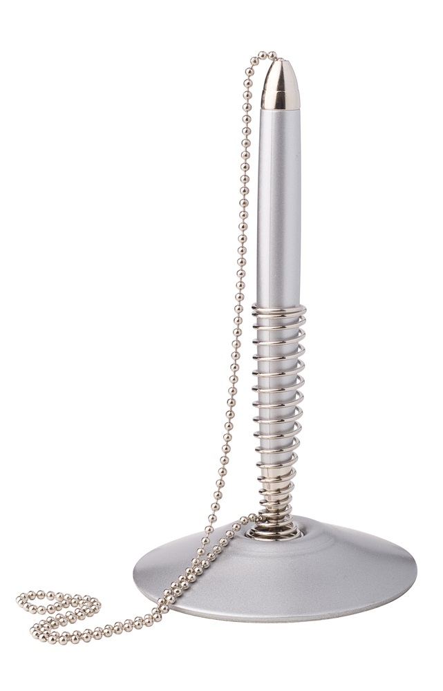 A talprészén elhelyezett ragasztófelület segítségével, vízszintesen rögzíthető, fém ügyféltoll. Cserélhető, csavaros golyósbetéttel szerelve.Vonalvastagság: 0,8 mm. Íráshossz: 2500 m.